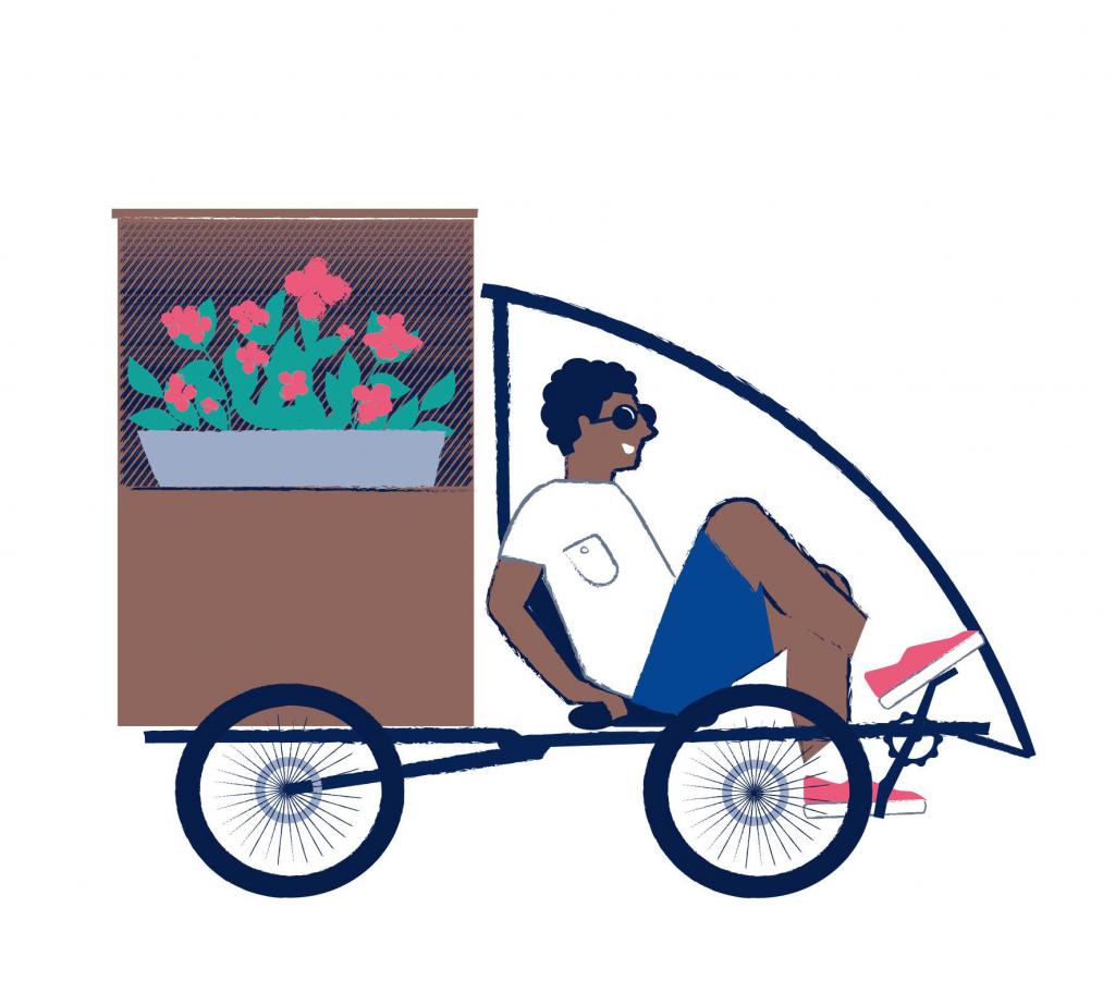 il s’agit de tricycles, avec une caisse à l’arrière, et dans laquelle on peut transporter des marchandises, mais aussi présenter des produits…